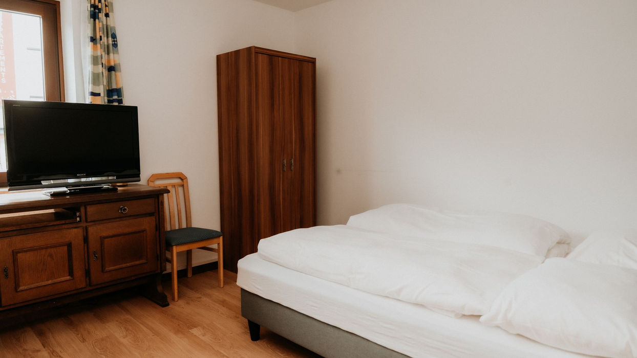 3 Schlafzimmer (ohne TV) mit Doppelbetten und Badezimmer